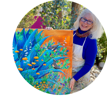 With a love of bright colors and nature, Susan's artwork encompasses the beauty and spontaneity of the outdoors. Her paintings portray gentle and often humorous images. Her art includes traditional watercolors, as well as bright acrylic on wrap canvases.